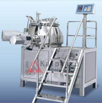 The Rapid Mixer Granulator is mixing unit with a bottom entry agitator ad side mounted chopper for granulation. It is used for dry blending, wet mixing, preparation of dough and granulation, i.e. cutting of the wet mass into small size granules. It works on the basic principle of agitation of the contents of the bowl at moderate speed and then running a specially profiled cutter blade at high speeds into the wet mass.